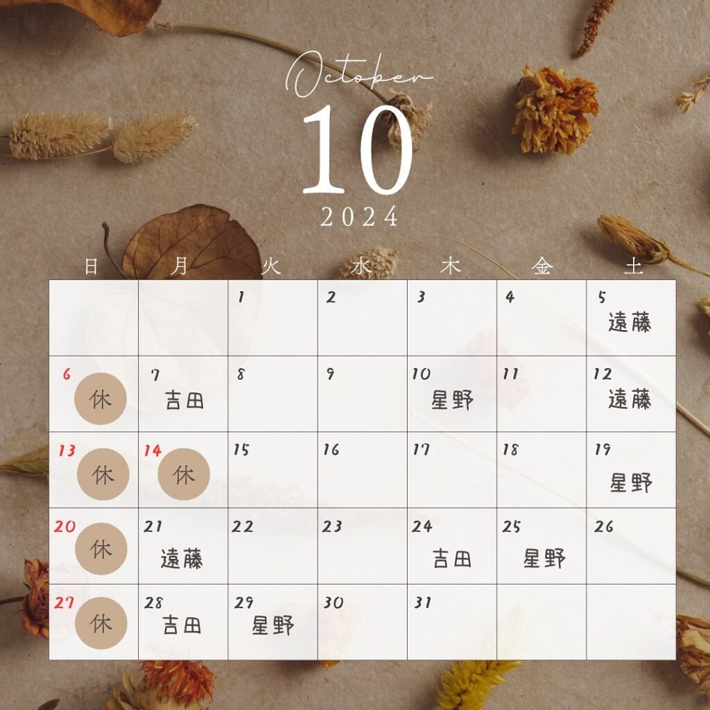 10月のお休み